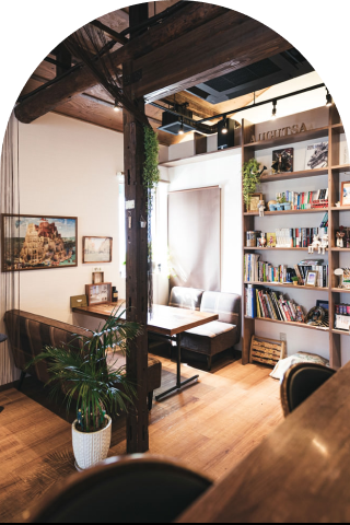 オーナーがブラジルから仕入れたこだわりのコーヒー豆。季節の果物を使ったケーキと一緒に楽しめるカフェ
